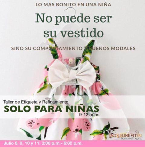 Taller diseñado sólo para niñas de 9 a 12 años, enfocado en refinamiento, buenos modales, postura, cortesía y respeto. Trabajamos además temas de seguridad, comunicación y resaltamos la feminidad en las niñas.