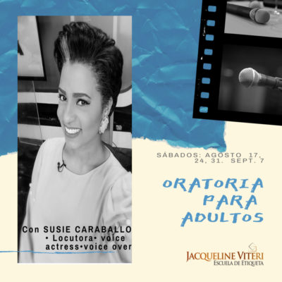 Capacitadora: Susie Caraballo, reconocida locutora, presentadora de noticias y profesional de la comunicación (voice over, voice actress).